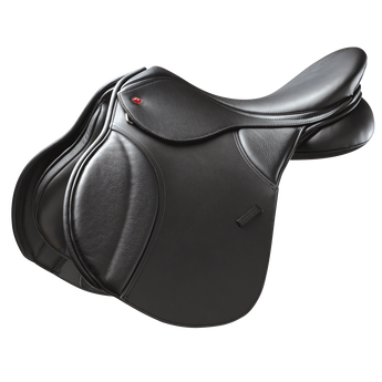 If your horse is more of medium withered shape (neither high or low wither) and a middleweight build, then this universal fitting saddle is the answer if you are looking for a saddle suitable for a llittle bit of everything. The quality seat and knee pads give the feeling of riding on an all-leather saddle.