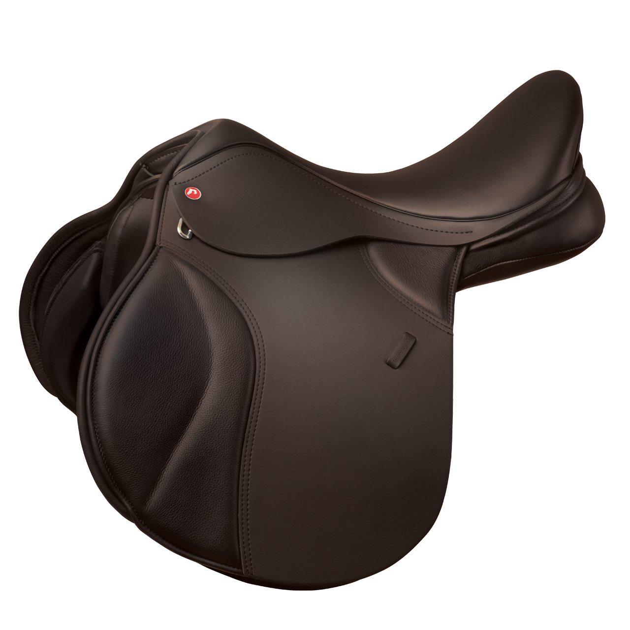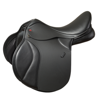 This is a universal fitting saddle with an open-headed tree and a broad panel design that interfaces well with most conformations. Cut far enough forward to allow for jumping as well as schooling and hacking.